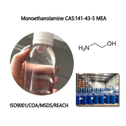 Моноетаноламин (Моно Етханол Амине/МЕА): Органско једињење, безбојна и вискозна течност на собној температури са мирисом амонијака, растворљива у води, раствор је јако алкални. Може се мешати са водом, етанолом, ацетоном и слабо растворљив у етру и угљен-тетрахлориду.