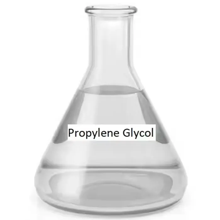 Пропиленгликол, такође познат као 1,2-Пропандиол, је вискозна течност без боје, укуса, скоро без мириса, добре хигроскопности и ниске токсичности. Његова молекулска формула је Ц₃Х₈О₂, његова релативна молекулска маса је 76,09, тачка кључања је око 188,2 степена, тачка топљења је -59 степени, а густина је 1,036 г/цм³ (20 степени). Може се мешати са водом, етанолом и разним органским растварачима, има јак поларитет и добру растворљивост. ПГ има низак притисак паре и високу термичку стабилност, није лако испарити у ваздуху, има стабилна хемијска својства и често се користи у системима који треба да растворе поларне или водорастворне компоненте.